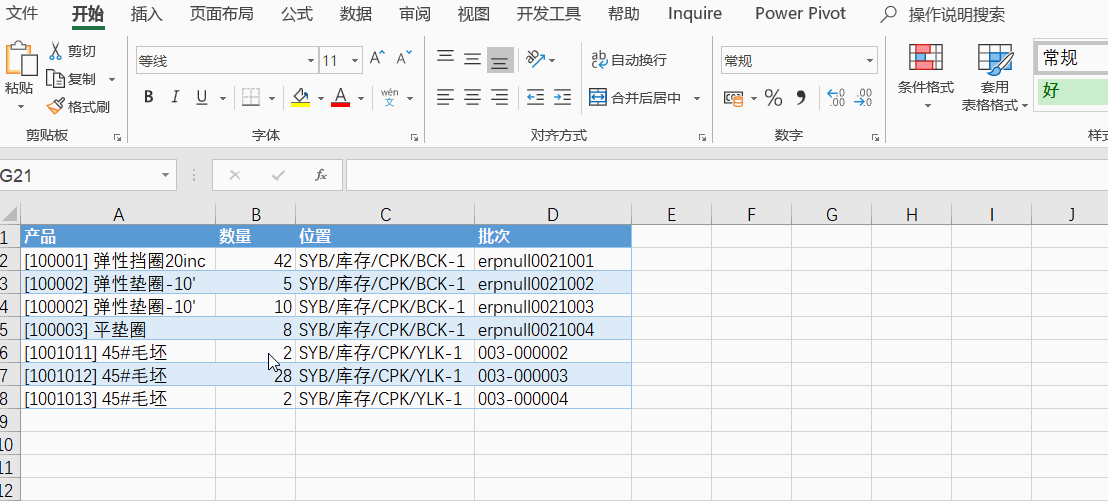 再使用“数据透视表”,按物料编码+库位+批次,统计合计数量。